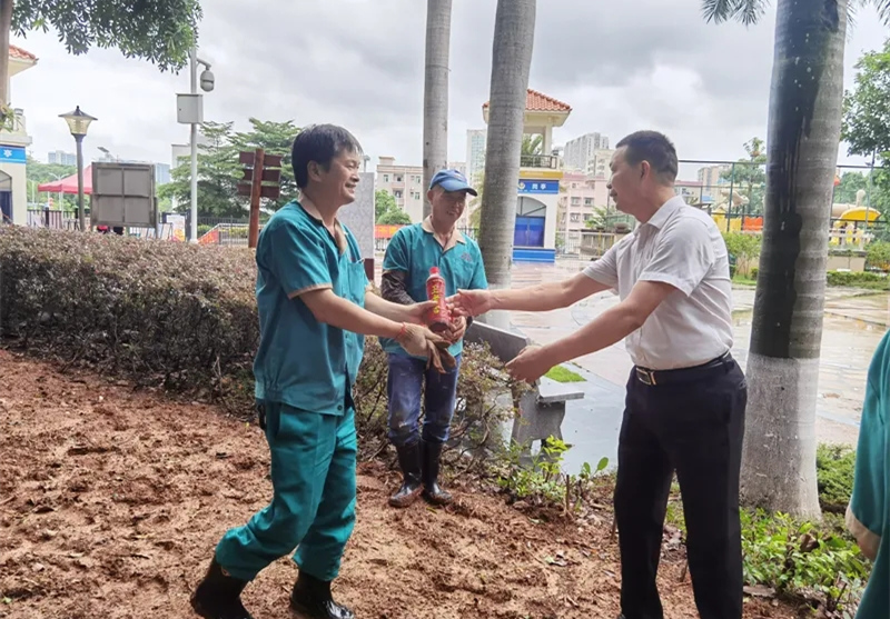 員工是企業(yè)最寶貴的財(cái)富,是企業(yè)發(fā)展的源動(dòng)力。6月24日,鴻運(yùn)物業(yè)總經(jīng)理陳喜祥、董事兼黨支部書記陳文遠(yuǎn),攜公司高層,頂著風(fēng)雨,前往旗下各項(xiàng)目,慰問一線防疫員工。陳總表示:"目前深圳疫情防控形勢(shì)依舊嚴(yán)峻,作為物業(yè)人,我們肩負(fù)著牢筑小區(qū)和各項(xiàng)目安全防線的重任,同時(shí)承擔(dān)著較大的風(fēng)險(xiǎn)和壓力。尤其是寶安區(qū)項(xiàng)目的保安員們,他們迎著酷暑、冒著風(fēng)雨,測(cè)溫、查碼、登記、識(shí)別車輛和人員,堅(jiān)定地執(zhí)行寶安區(qū)疫情防控2號(hào)文件,一站就是六七個(gè)鐘,非常的辛苦。在此,我想對(duì)鴻運(yùn)物業(yè)一線防疫人員道一聲辛苦了!正是有你們的辛勤付出和無(wú)悔堅(jiān)守,我們鴻運(yùn)物業(yè)才能穩(wěn)步前行,我們的防疫工作才能取得一個(gè)又一個(gè)階段性的勝利。”陳總親手向值勤保安員們送上一瓶瓶解暑涼茶,保安員們以敬禮來回敬。 黨支部書記陳文遠(yuǎn)握著保安員的手,叮囑他們務(wù)必做好個(gè)人防護(hù),一定要注意自身安全。激勵(lì)他們?cè)賵?jiān)持堅(jiān)持,相信疫情在我們的共同努力下很快就會(huì)過去。陳文遠(yuǎn)書記表示:“堅(jiān)定不移地落實(shí)好最新防疫政策,守護(hù)居民安全,是我們鴻運(yùn)人義不容辭的責(zé)任。公司及黨支部將竭力為一線員工提供充足的后勤保障,同時(shí)希望每一個(gè)鴻運(yùn)人為疫情防控貢獻(xiàn)力所能及的力量?!兵欉\(yùn)物業(yè)關(guān)注員工健康,這是我們打贏疫情防控戰(zhàn)的基石,為此公司下達(dá)《關(guān)于疫情期間加強(qiáng)員工健康管理的通知》,要求各部門、管理處落實(shí)好監(jiān)督職責(zé),...