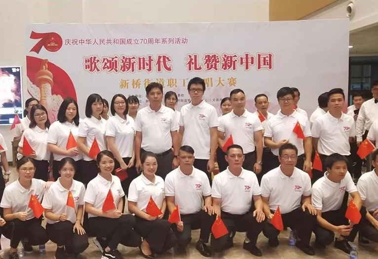 時(shí)光如水,歲月如歌,祖國70周年華誕即將到來,為強(qiáng)化愛國之志、激勵(lì)愛國之情,新橋街道“歌頌新時(shí)代·禮贊新中國”職工大合唱比賽,于9月27日晚上19:30,在新橋文化藝術(shù)中心大劇院圓滿舉行。上星工作站攜手鴻運(yùn)物業(yè)28名員工,組成上星合唱隊(duì),代表上星社區(qū)參加了此次合唱比賽,現(xiàn)場演唱“我的中國心”“歌聲與微笑”兩首曲目,最終斬獲佳績,贏得銅獎(jiǎng)。 上臺(tái)后,大家抬頭挺胸,手舉國旗于心口,現(xiàn)場莊嚴(yán)肅穆,隨著“我的中國心”前奏響起,隊(duì)員們凝神屏氣,將滿腔的愛國熱情融入曲目的演唱中。唱完,現(xiàn)場掌聲雷動(dòng)。改編后的“歌聲與微笑”節(jié)奏更加的輕快、靈動(dòng),大家活潑的演唱風(fēng)格、燦爛的微笑,將現(xiàn)場氛圍帶到了頂點(diǎn),臺(tái)下觀眾紛紛跟著節(jié)拍揮舞熒光棒。完成表演后,大家紛紛表示非常的盡興,并為觀眾的熱情互動(dòng)倍感鼓舞。 在此,感謝新橋街道總工會(huì)舉辦此次活動(dòng),感謝上星工作站對此次合唱的用心安排,也感謝黃老師對合唱隊(duì)的諄諄教導(dǎo)!我們沒有扎實(shí)的演唱功底,缺乏成熟的演唱技巧,你因材施教,教會(huì)了我們用情感去打動(dòng)人心,用歌曲去表達(dá)鴻運(yùn)物業(yè)這個(gè)團(tuán)體的愛國熱情。最后,鴻運(yùn)物業(yè)在此祝大家國慶快樂,祝祖國母親永遠(yuǎn)繁榮富強(qiáng)!
